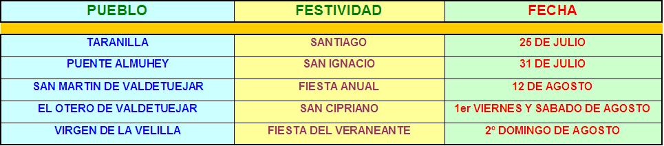 En este apartado incluiremos un calendario festivo para que el internauta tenga acceso a una agenda de las fiesta que puede encontrar en nuestro valle y los de al lado. Espero que me mandéis vuestra información para tener una base de datos completita.